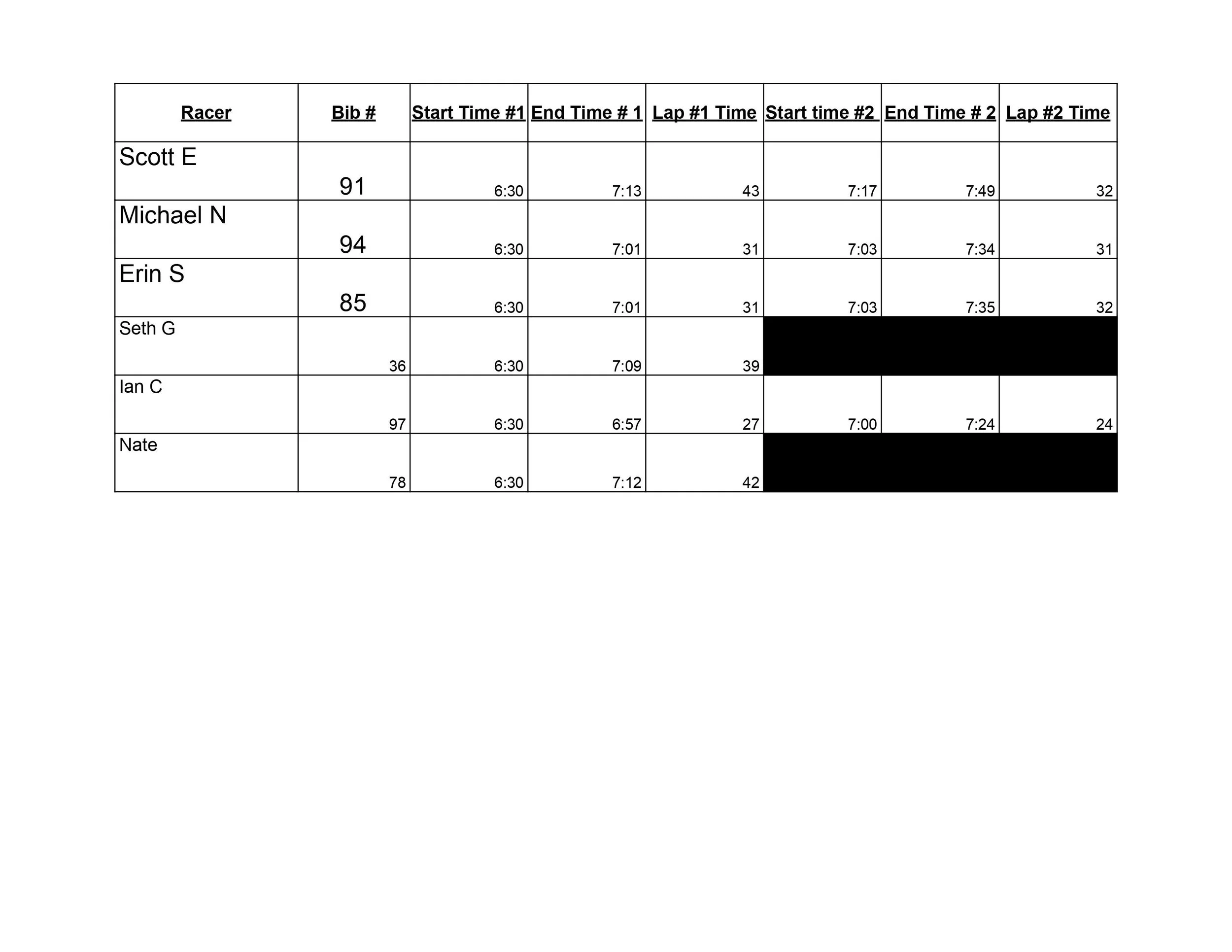 Race begins at 6:30pm and racers are encouraged to do as many laps as possible, last lap begins at 7:30pm. All timing will be done with the Strava App
